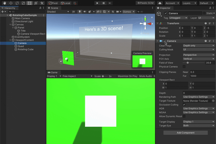 Automatically bind Camera viewports to RectTransforms, enabling seamless 3D model rendering directly into responsive UI ...
