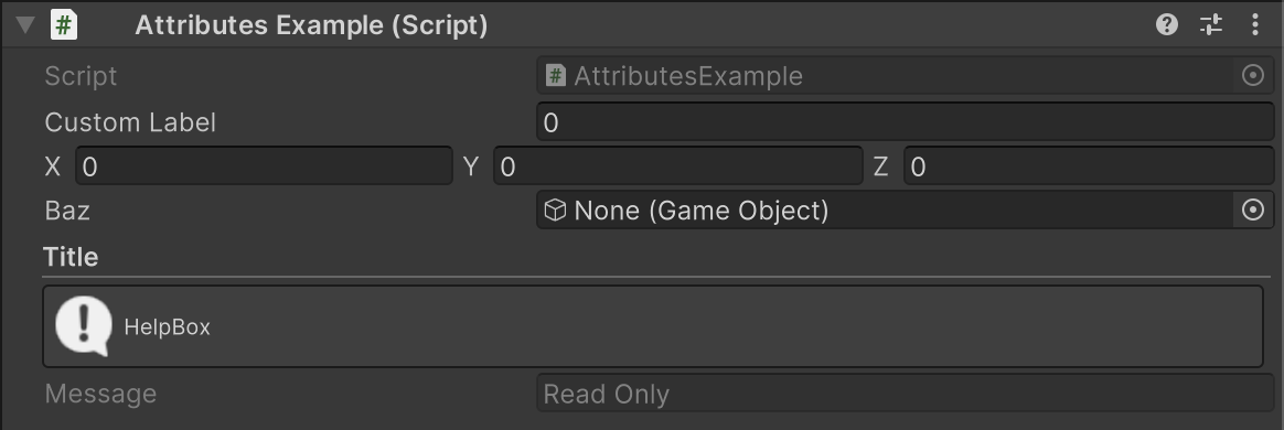 public class AttributesExample : MonoBehaviour