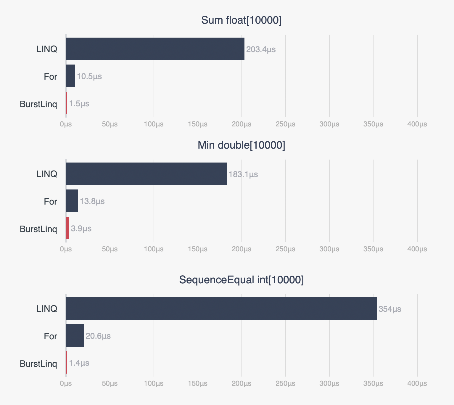 The concept of BurstLinq is inspired by Cysharp/SimdLinq. BurstLinq is a Unity-optimized version that uses Burst instead of .NET's SIMD API.