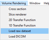 In the menu bar, click "Volume Rendering" and "Load raw dataset"