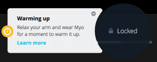 You will also have to wait for your armband to entered the 'Locked' status, which usually takes a few seconds to warm up. If this does not happen, close the Myo Connect application and rerun it.