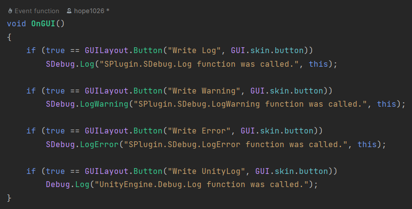 - Use the SPlugin.SDebug.Log function in your script to write a log