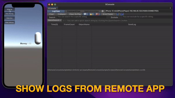 Add **SPluginRemoteConsole** to your Unity project via Package Manager: