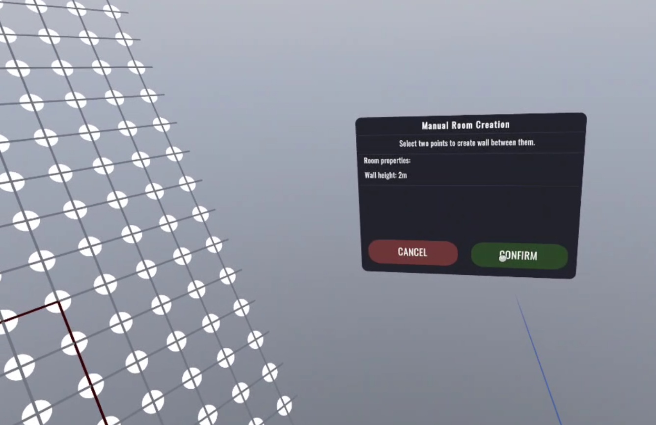 Developed for Oculus Quest 3, it combines mixed reality passthrough with full VR room creation, offering a flexible approach to designing interiors.
