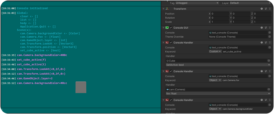 2. Add a Console GUI script to your scene and drop a reference to the asset into it.