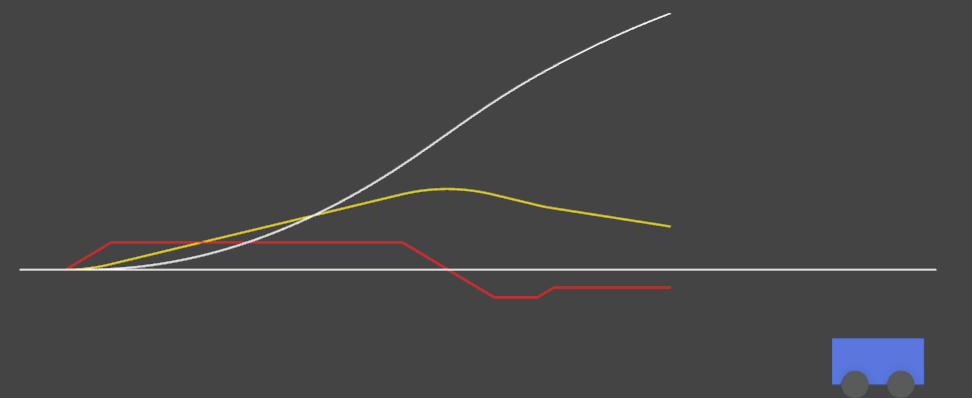 Simulate a car showing the graphs of distance, velocity, and acceleration.