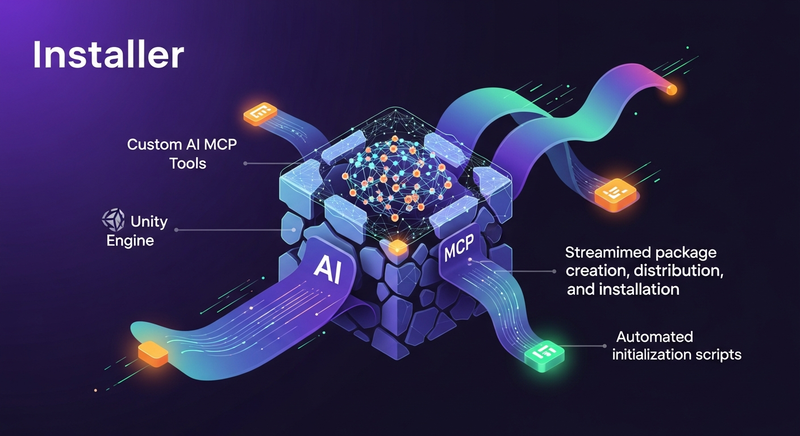 Create custom AI MCP Tools for Unity Engine in minutes using this template project. Streamlines package creation, distribution, and installation with automated initialization scripts, support for both Editor and Runtime tools, and seamless integration with AI Game Developer (Unity-MCP) for enhanced AI-assisted development workflows.
