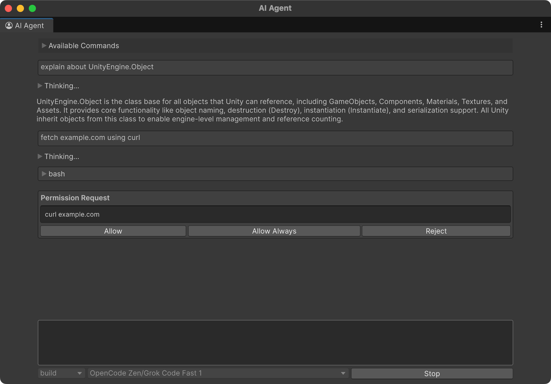 Unity Agent Client is an editor extension that uses the Agent Client Protocol (ACP) proposed by Zed to enable any AI agent to run on the Unity editor.